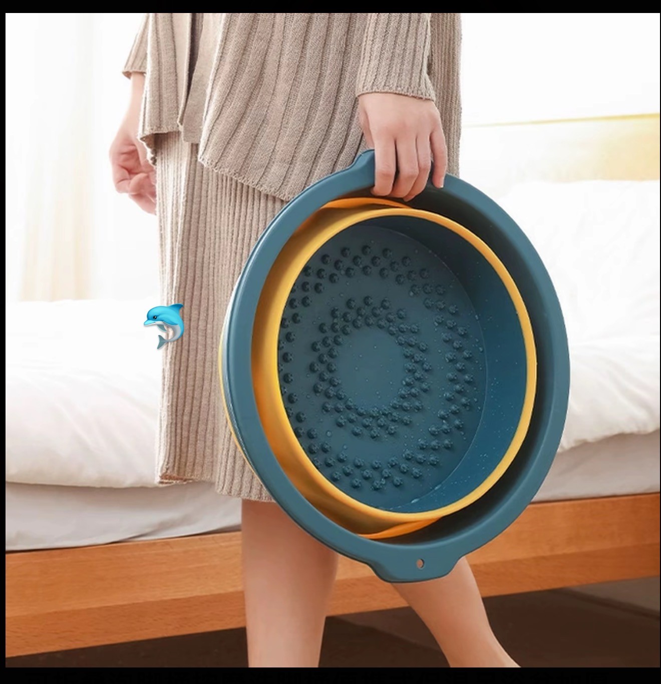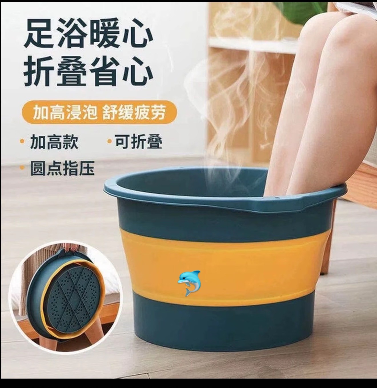 - 伸缩设计超灵活:展开直径 39cm,能泡到脚踝以上10cm,满足“泡到小腿”的需求;收起来薄如书本,收纳零压力 - 防滑防烫双保障:底部是硅胶防滑垫,泡脚时盆不会滑走;塑料盆壁隔热,摸外侧不烫手,避免不小心碰倒烫伤 - 轻便易倒水:整体重量才1.2kg,女生单手就能提去倒水,不用喊人帮忙,倒完水折叠收纳超省心💦