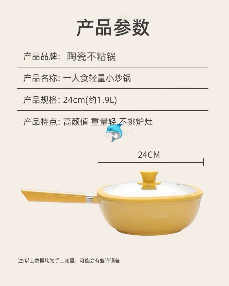 材质:精铁 锅口尺寸:24cm-深:9.5cm 炉灶:通用 颜色:单款黄色 配置:玻璃盖