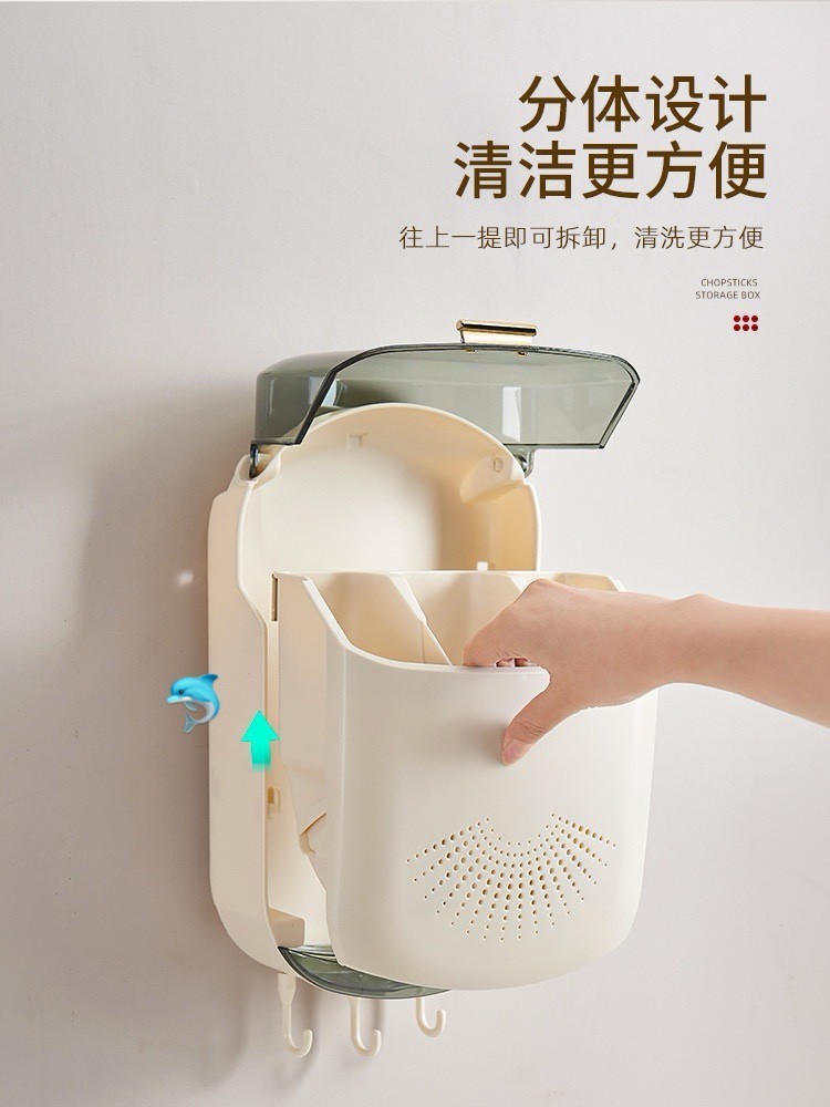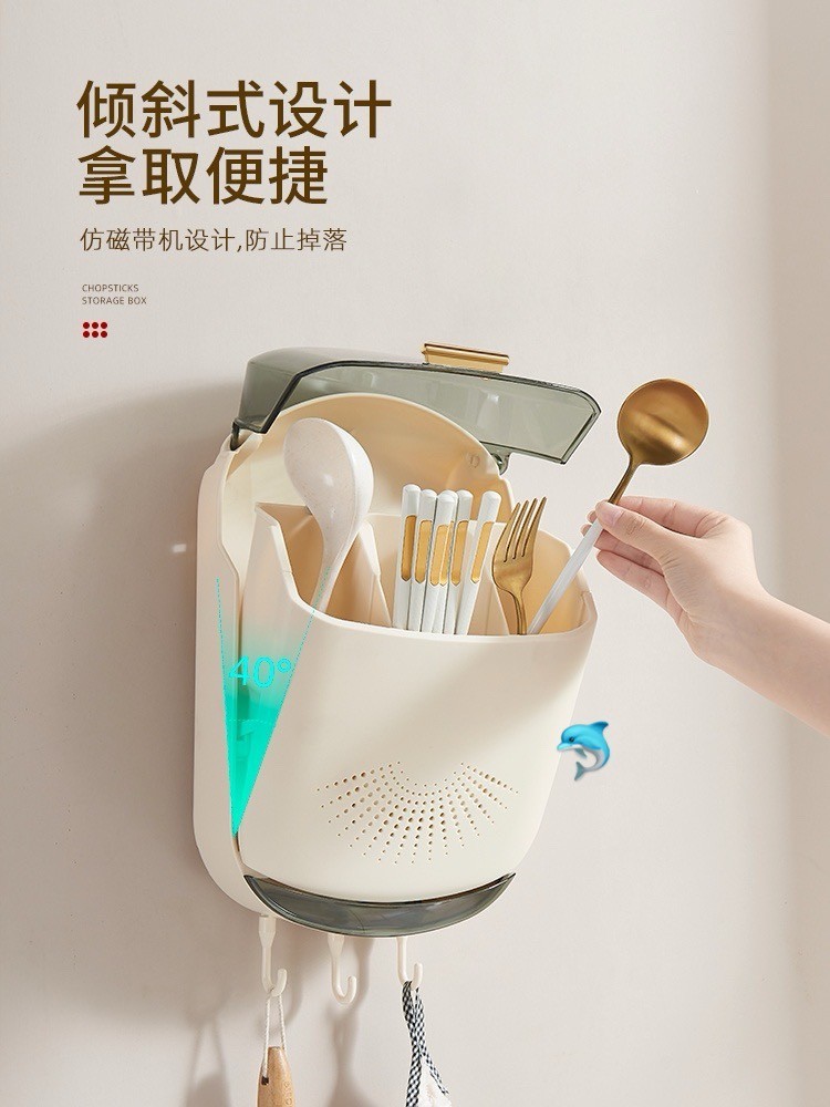 多功能壁挂带盖筷子笼可沥水的筷子筒