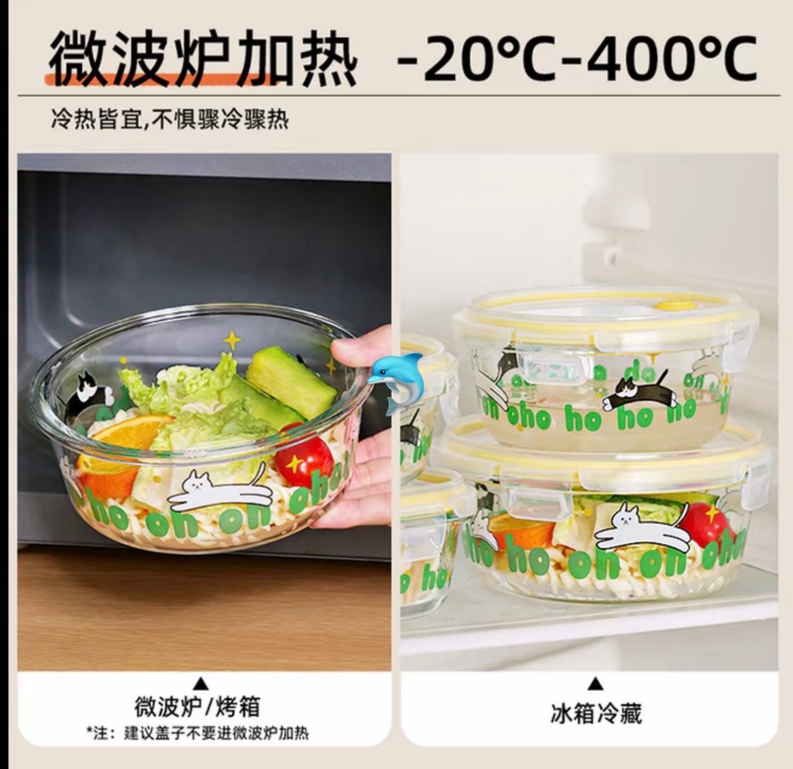 大号橘猫圆形保鲜碗