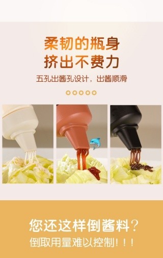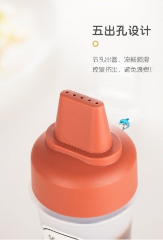 带防尘盖五孔有刻度挤酱瓶🌟您还这样倒酱料?倒取用量难以控制😣五孔设计多用途挤酱瓶,柔韧的瓶身挤出不费力,小翻沿嘴设计,出酱顺滑!沙拉酱、番茄酱等各种酱料不在话下🥰,五孔出酱,流畅顺滑控量挤出,避免浪费!自带刻度满瓶350ml🎈弹性好挤压不费力,防尘埃侵袭,防蚊虫骚扰,做工细致经久耐用🔅 颜色随机 材质: PP+PE+PC 容量: 350ml