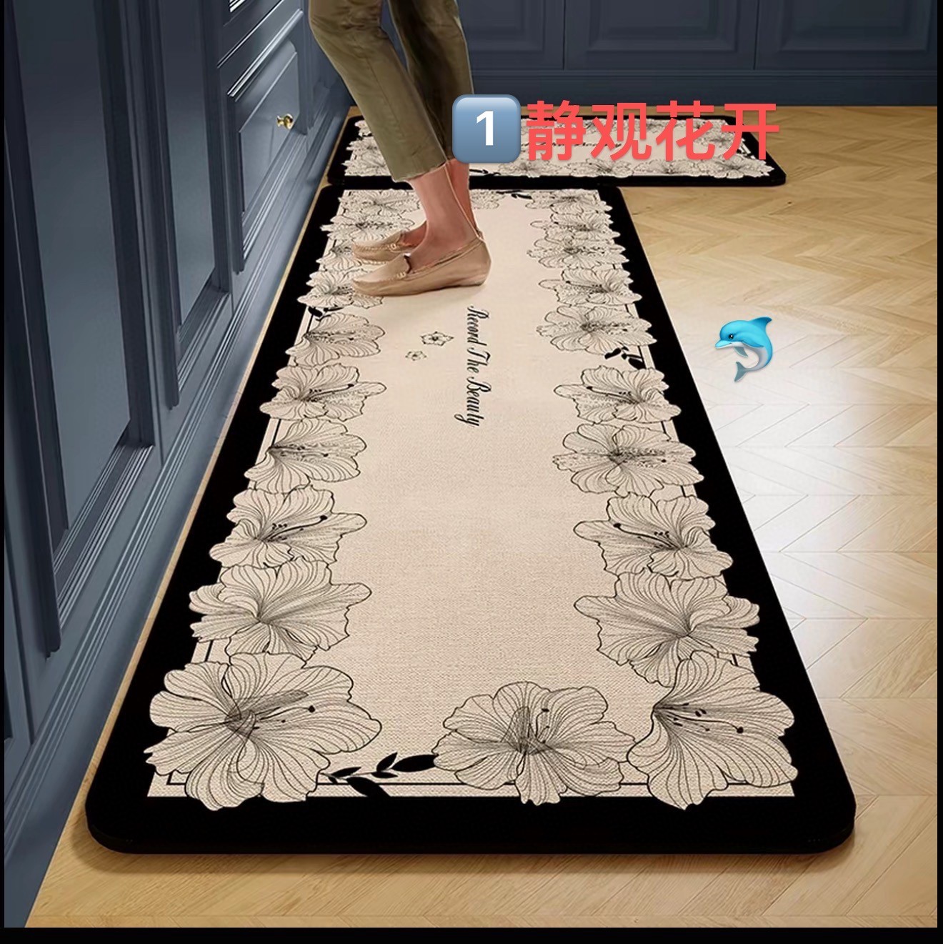 尺寸:40*120cm 图案:植物花卉 款式:1️⃣静观花开,2️⃣绿色静谧,3️⃣花丛一角 适用:厨房,浴室,玄关,商用场所等