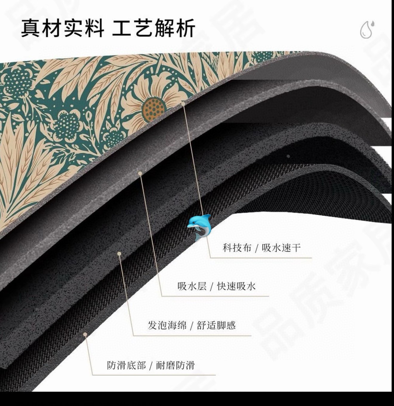 ✅ 硅藻泥+科技布:表面吸水吸油,底部防滑耐磨,撒泼倒水都不怕,浴室积水“秒消失”💦