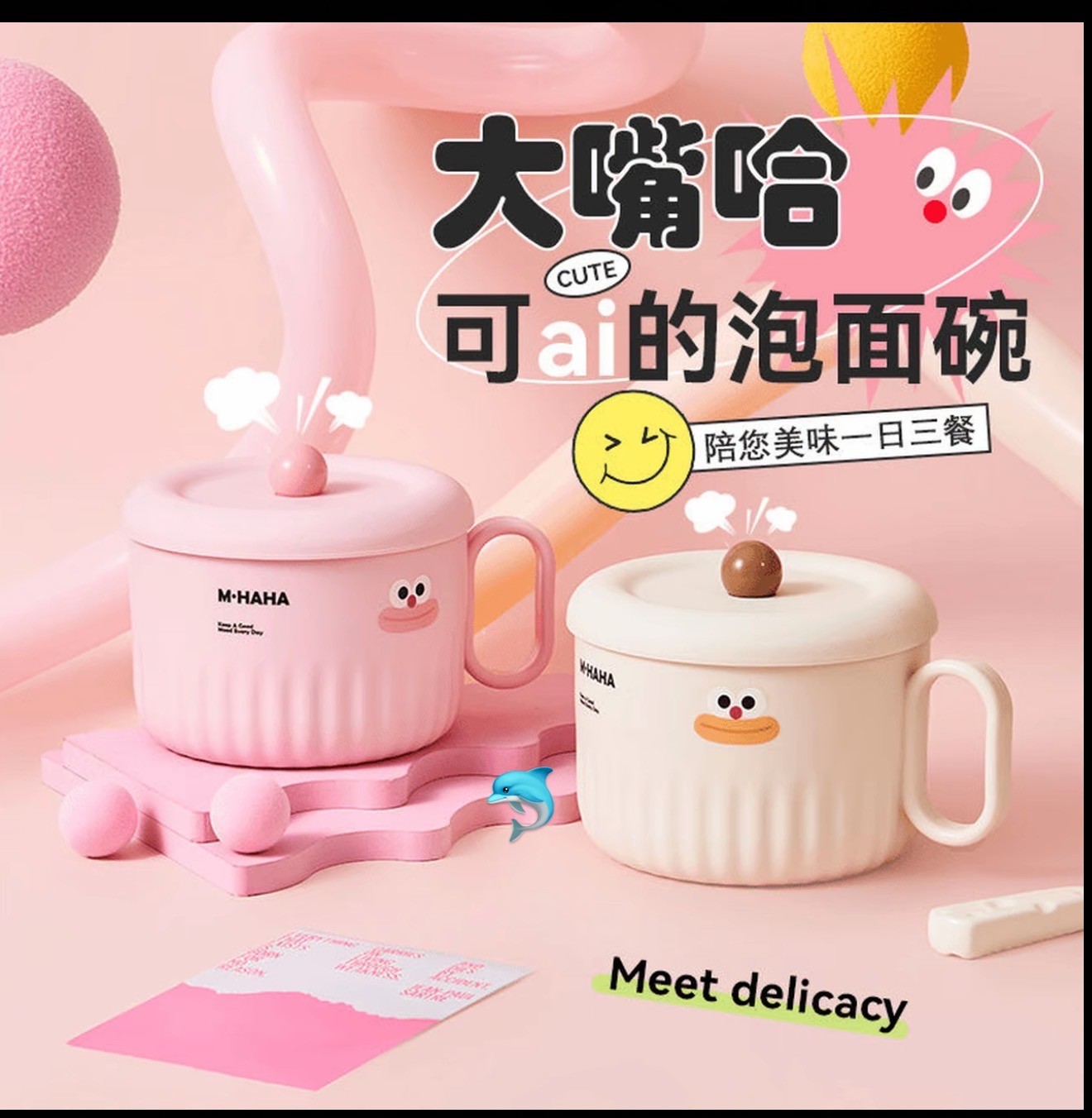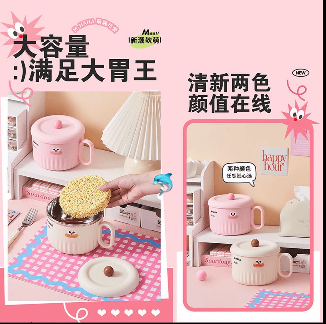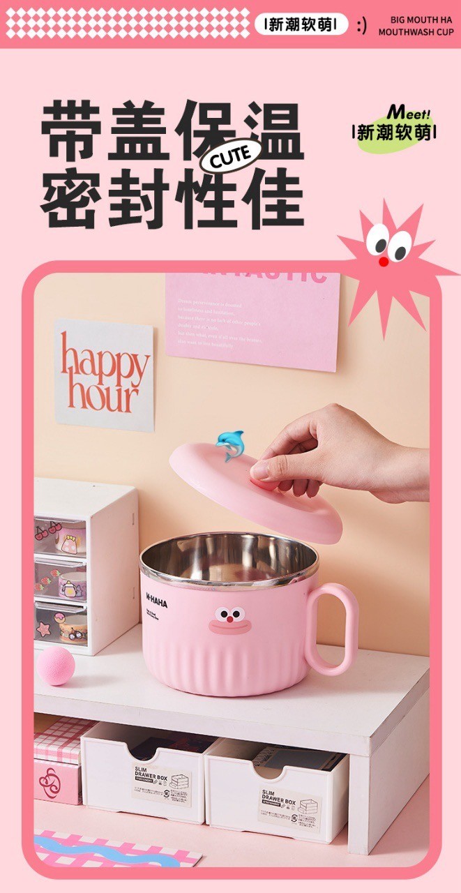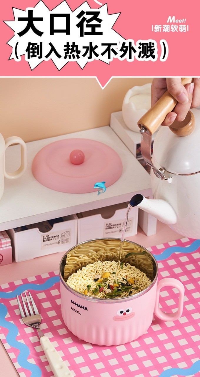 超萌卡通不锈钢泡面碗
