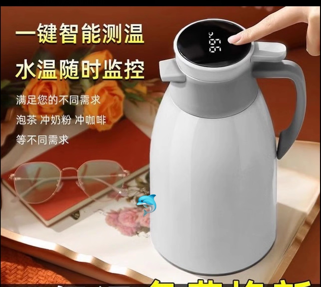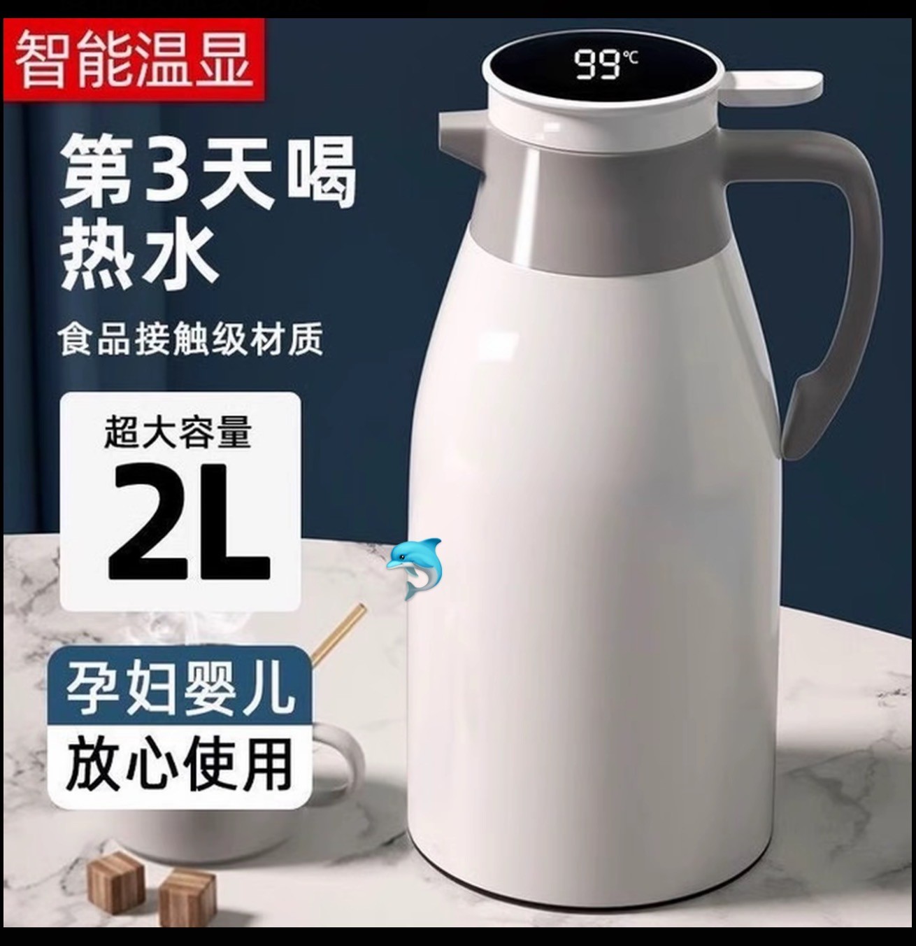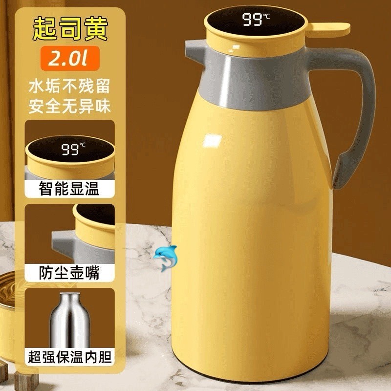 产品材质:食品接触级pp 硅胶 玻璃 产品容量:2L 产品款式:智能数显温度款 产品颜色:1️⃣白色,2️⃣黄色,3️⃣蓝色,4️⃣绿色