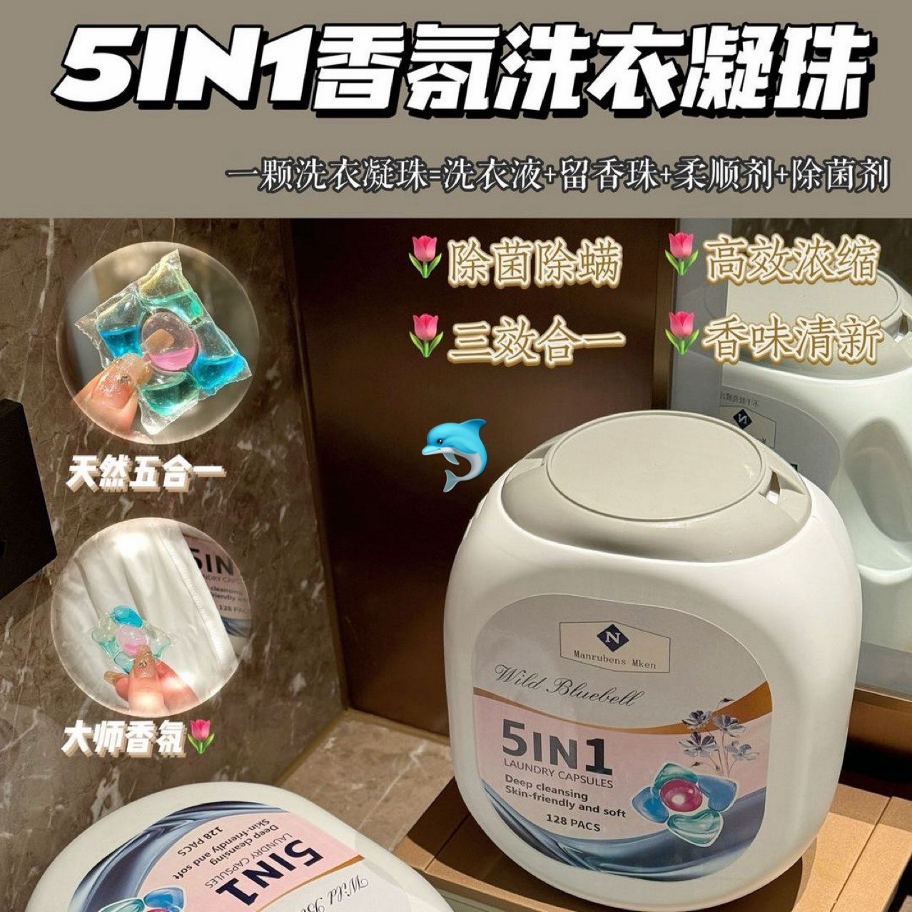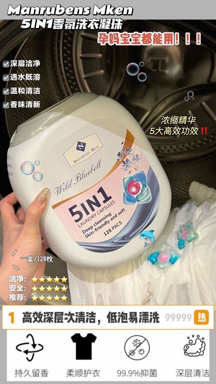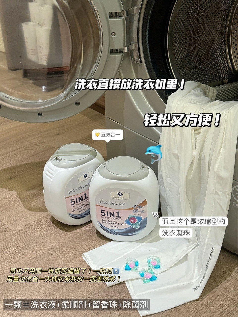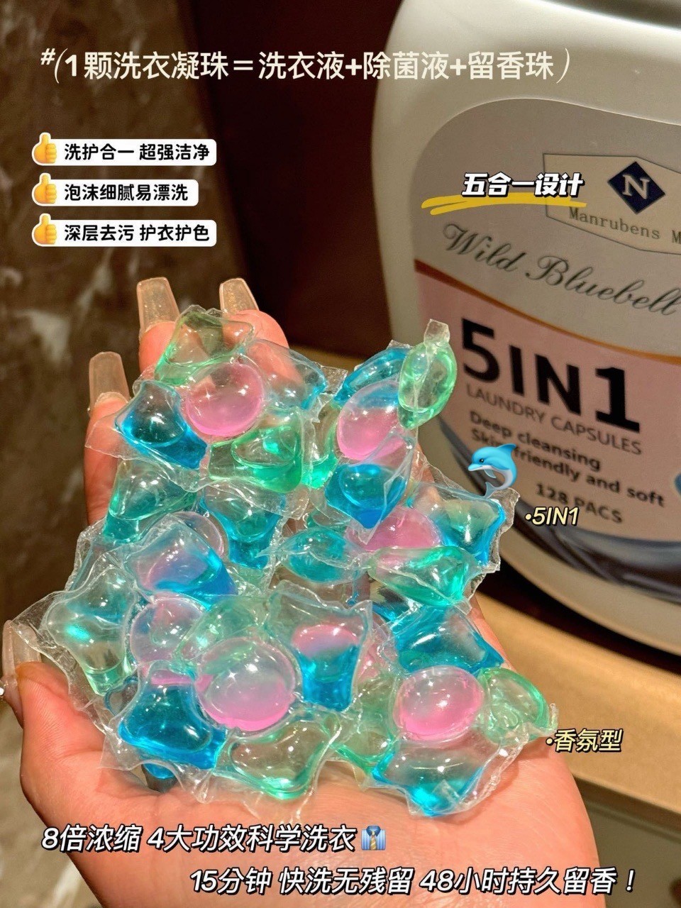 5IN1香氛洗衣凝珠柔顺剂清洁剂留香珠除菌液浓缩凝珠