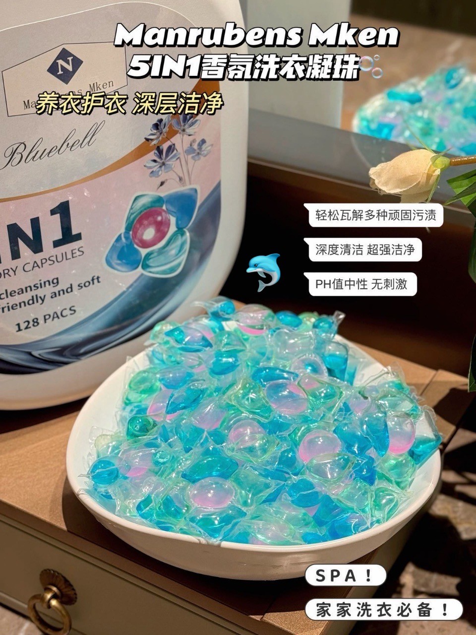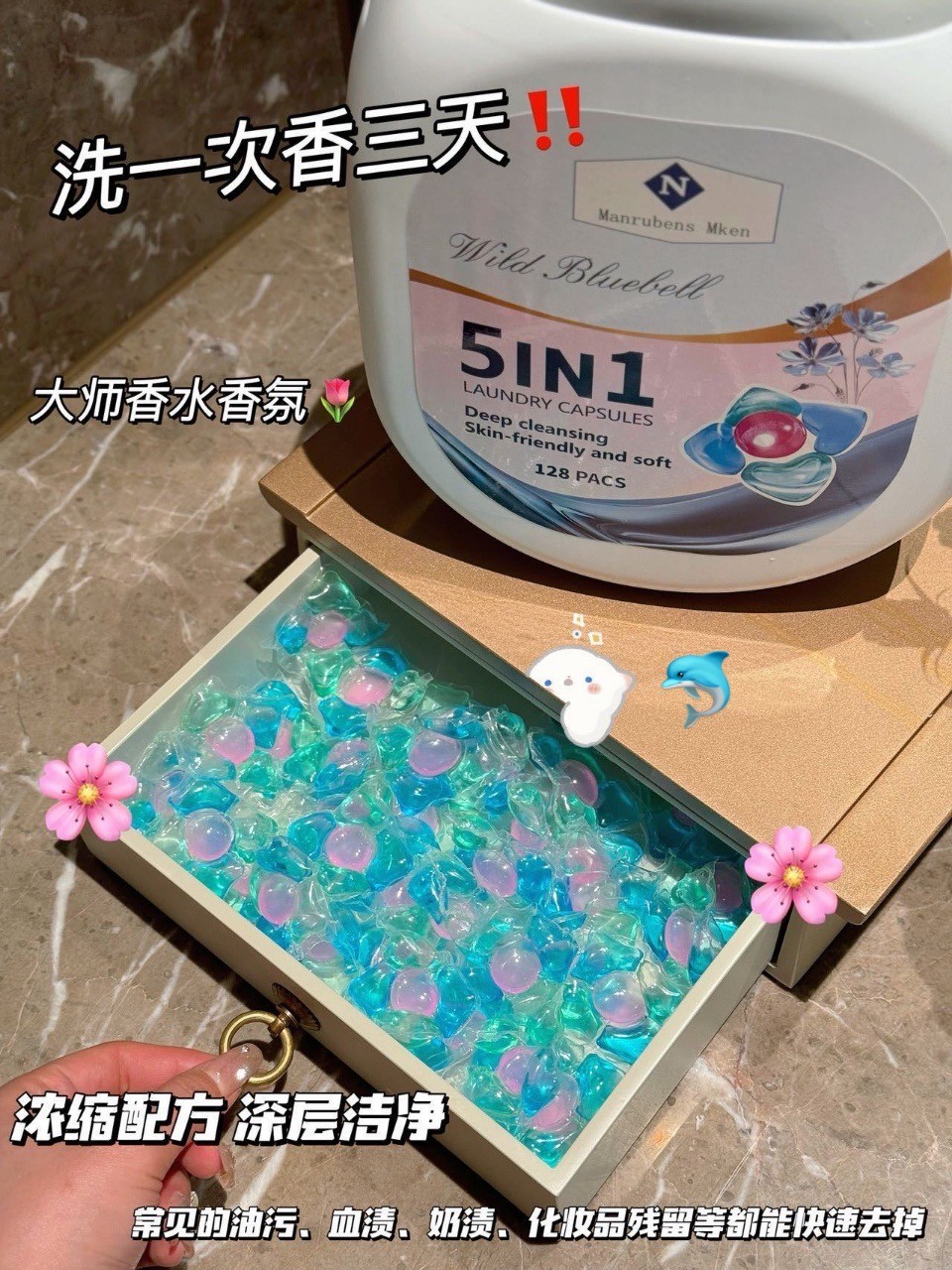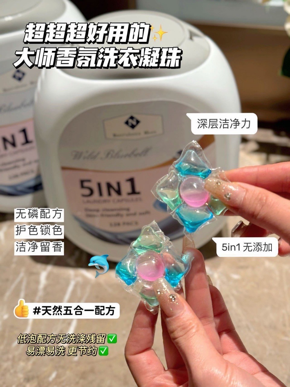 5IN1香氛洗衣凝珠柔顺剂清洁剂留香珠除菌液浓缩凝珠