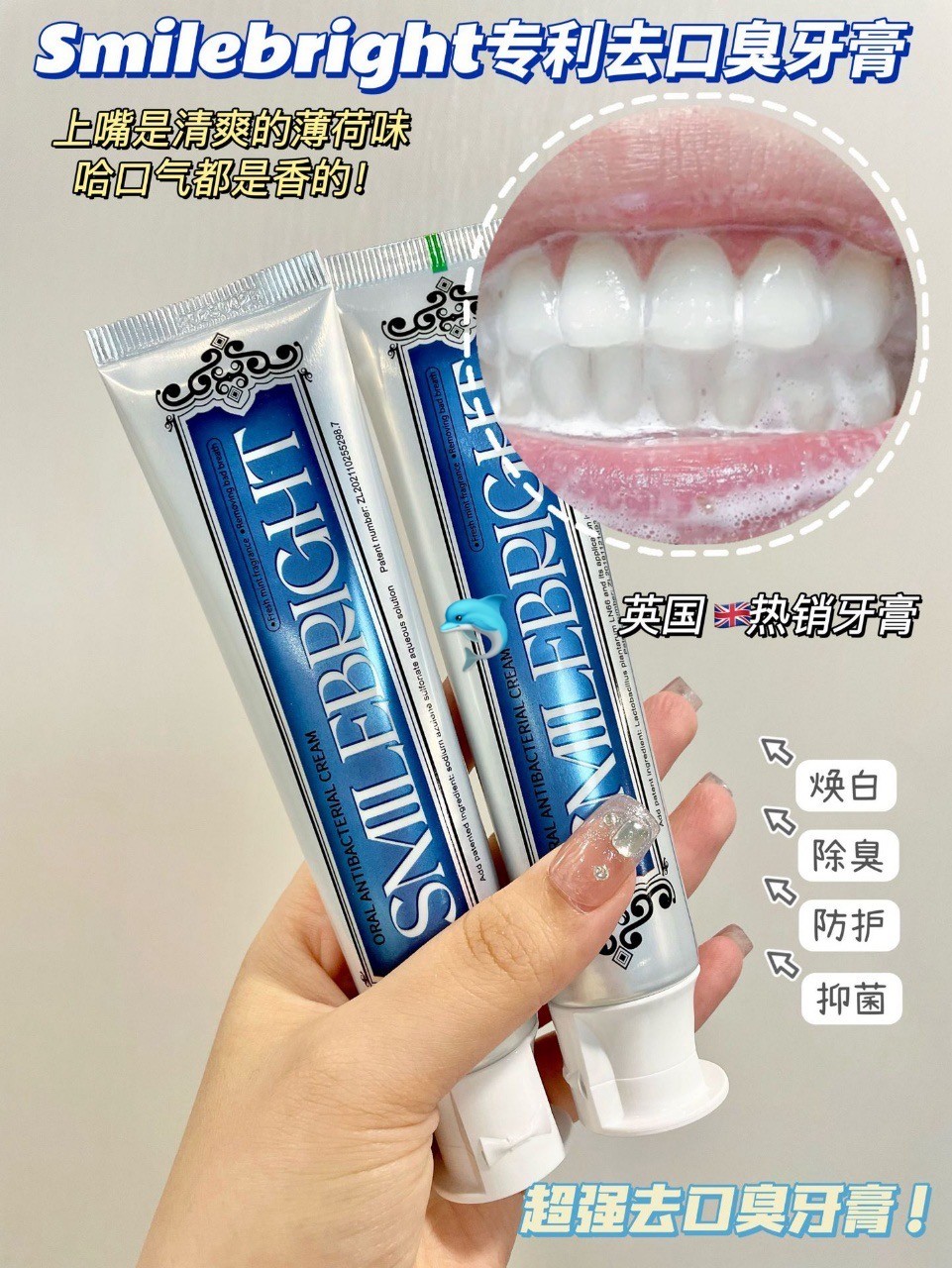 微信:smart-link888 电话:4372319888 请以以上两种方式联系,谢谢 规格:100g/支 香型:薄荷 保质期:两年 材质成分:纯植物提取,添加日本金银花、金合欢花提取物,英国进口β-熊果苷 功效:口气清新,清洁美白除臭。