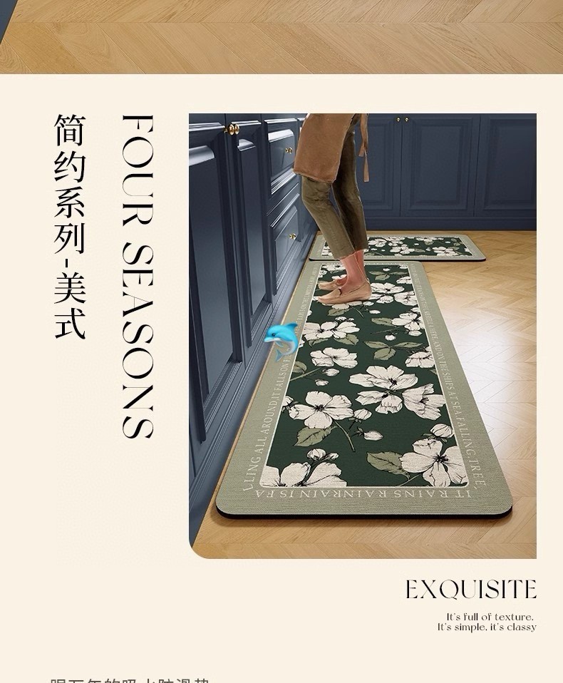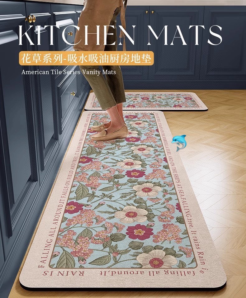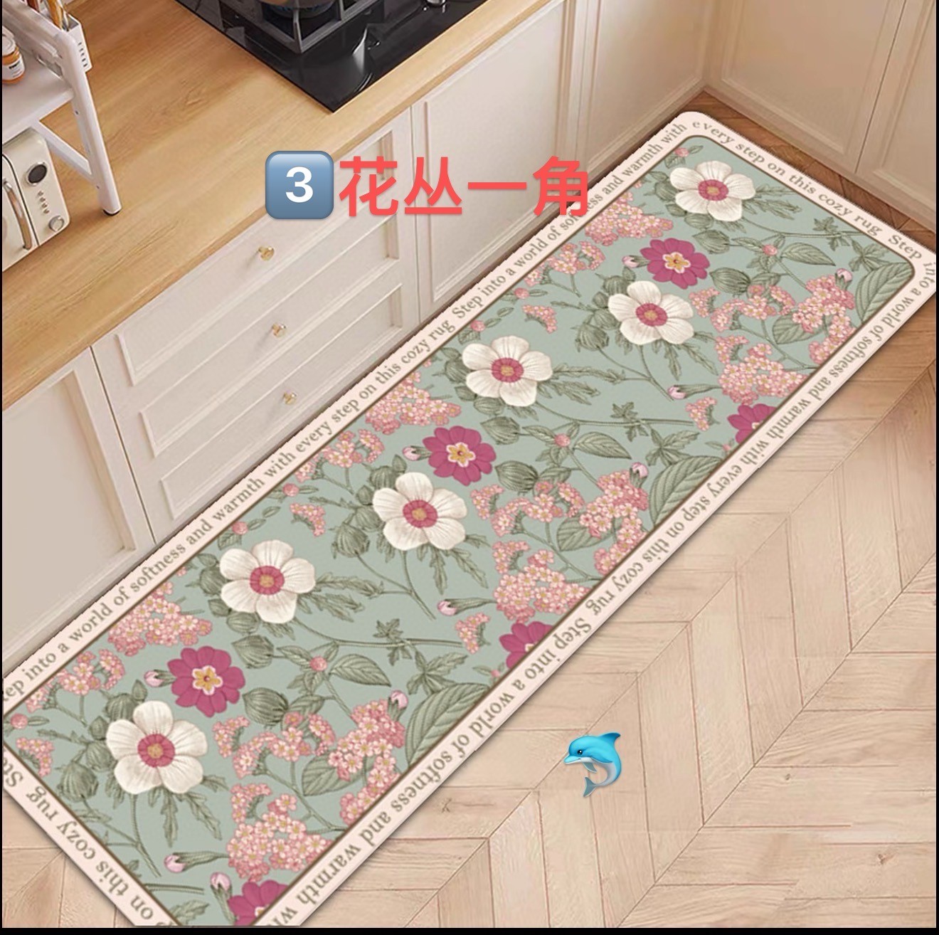 尺寸:40*120cm 图案:植物花卉 款式:1️⃣静观花开,2️⃣绿色静谧,3️⃣花丛一角 适用:厨房,浴室,玄关,商用场所等